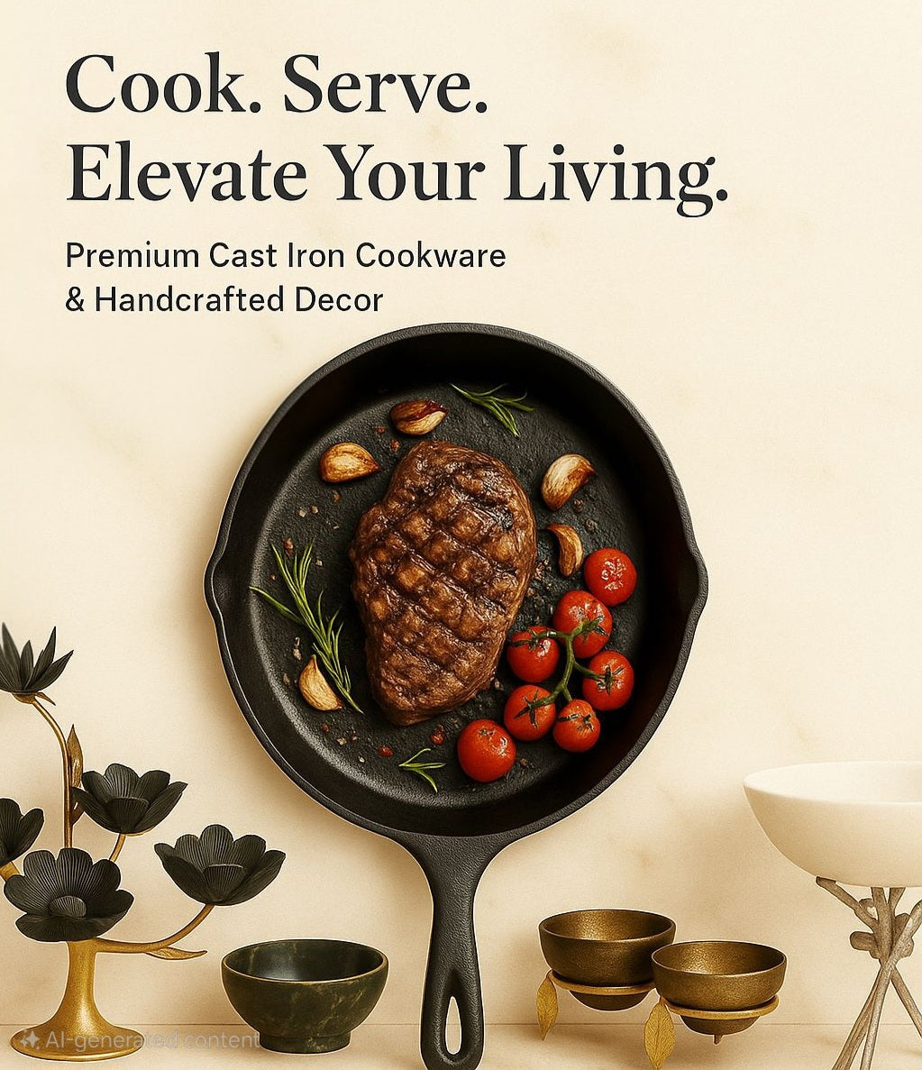 Ahlan Living brings timeless craftsmanship to modern homes — from Krucible Kitchen’s cast iron collection to handcrafted brass, aluminium, and marble décor.